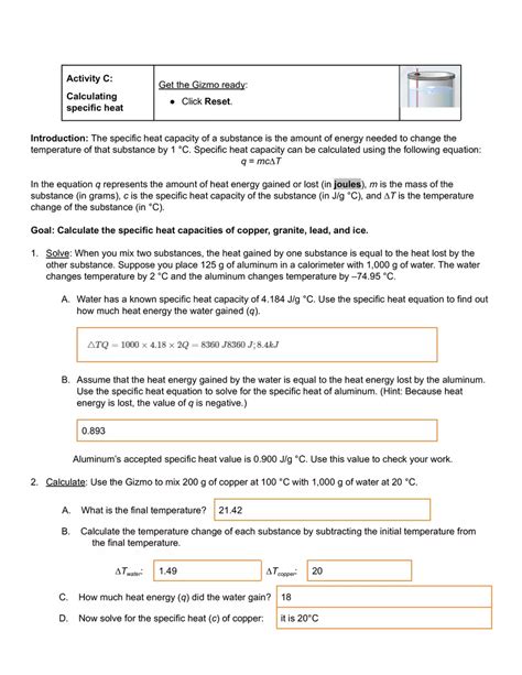 Download Calorimetry Lab Answers Explore Learning Doc
